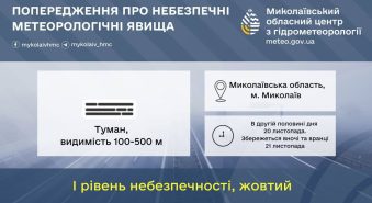 Туман накриє Миколаїв та область сьогодні у другій половині дня: видимість 100-500 м. Водіїв та пішоходів просять бути дуже уважними та обережними на дорогах.