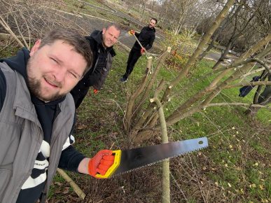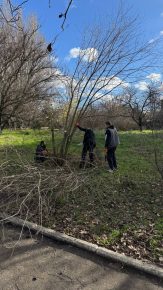 З ентузіазмом взялися за справу представники організації та волонтери: вони вже прибрали частину території та обрізали сухі гілки на деревах. Разом із керівником “Опори Батьківщини” Ігорем Гончаровим, представниками організації Аліною Хлань та Дмитро Шолопко, а також помічником народного депутата Олегом Лівенцевим вони зробили перший, дуже важливий крок.